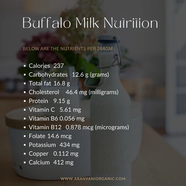 4) Additionally, buffalo milk is known to have a higher calcium and iron content compared to cow's milk, making it an excellent choice for supporting bone health and boosting energy levels.